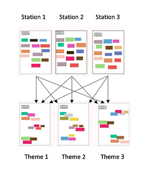 We discussed how to group different ideas from 'stations/groups' of stakeholders and categorized similar ideas and insights together to form themes.